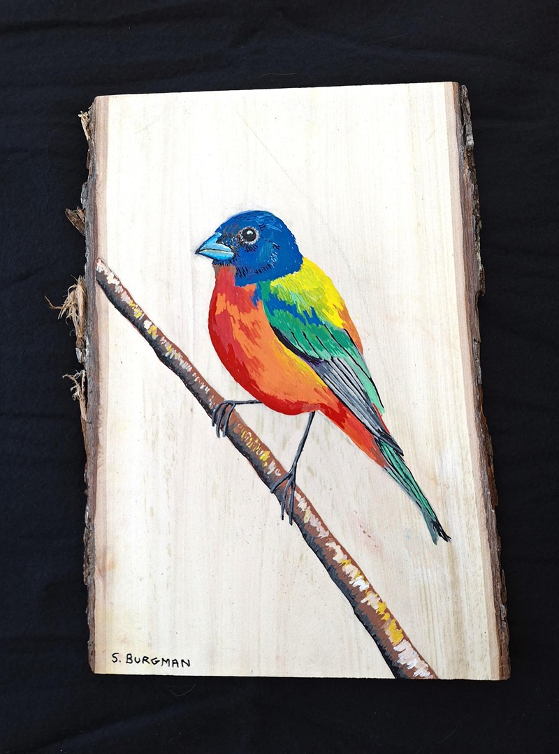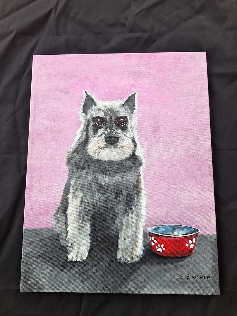 My work features original pieces, primarily acrylic on canvas, with select works in colored pencil (Prismacolor) on paper. My subject matter includes a range of scenes, as well as human and animal portraits, and floral compositions.